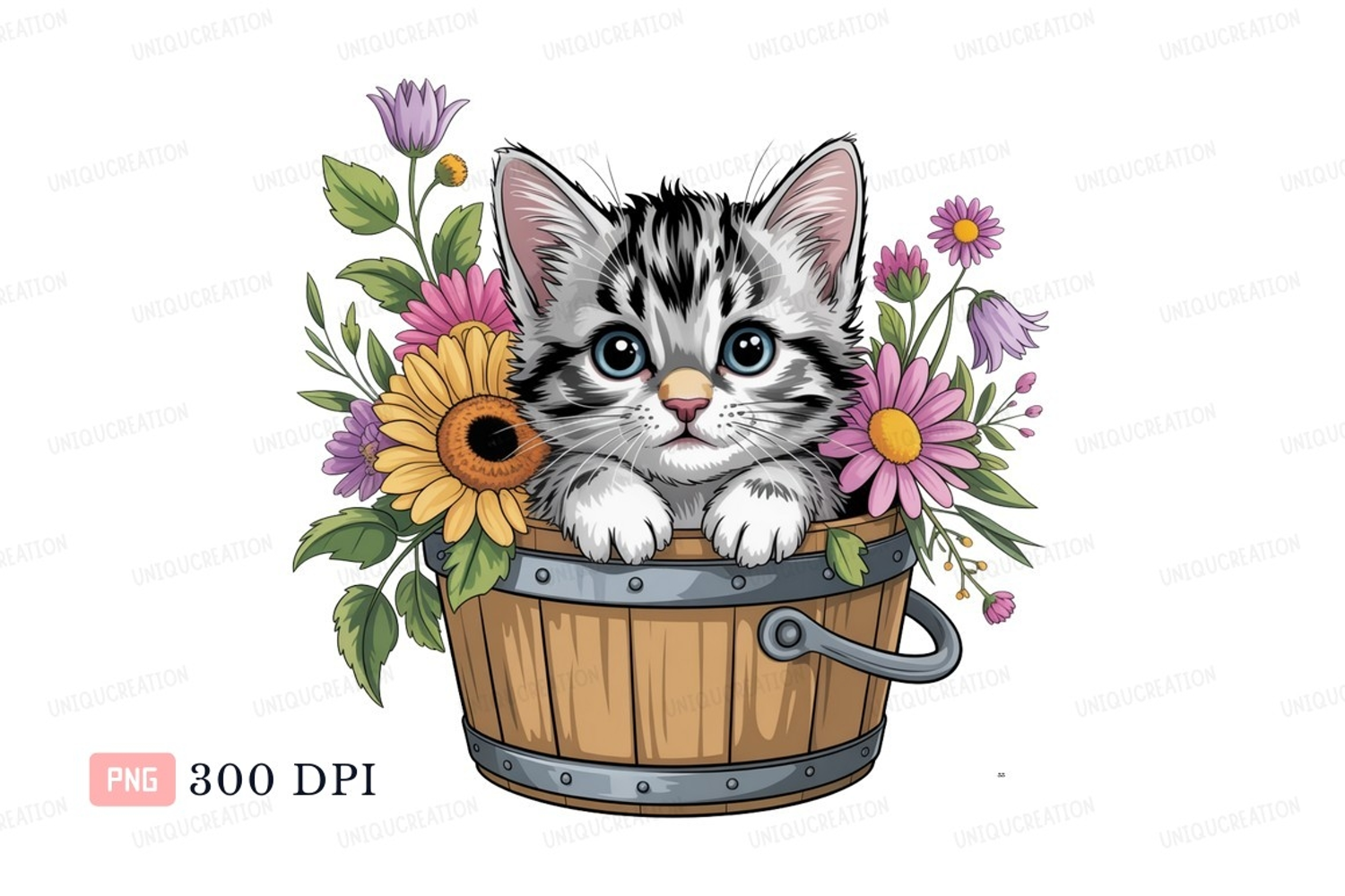 Similar Design Products to Kitten in bucket with flowers sunflower