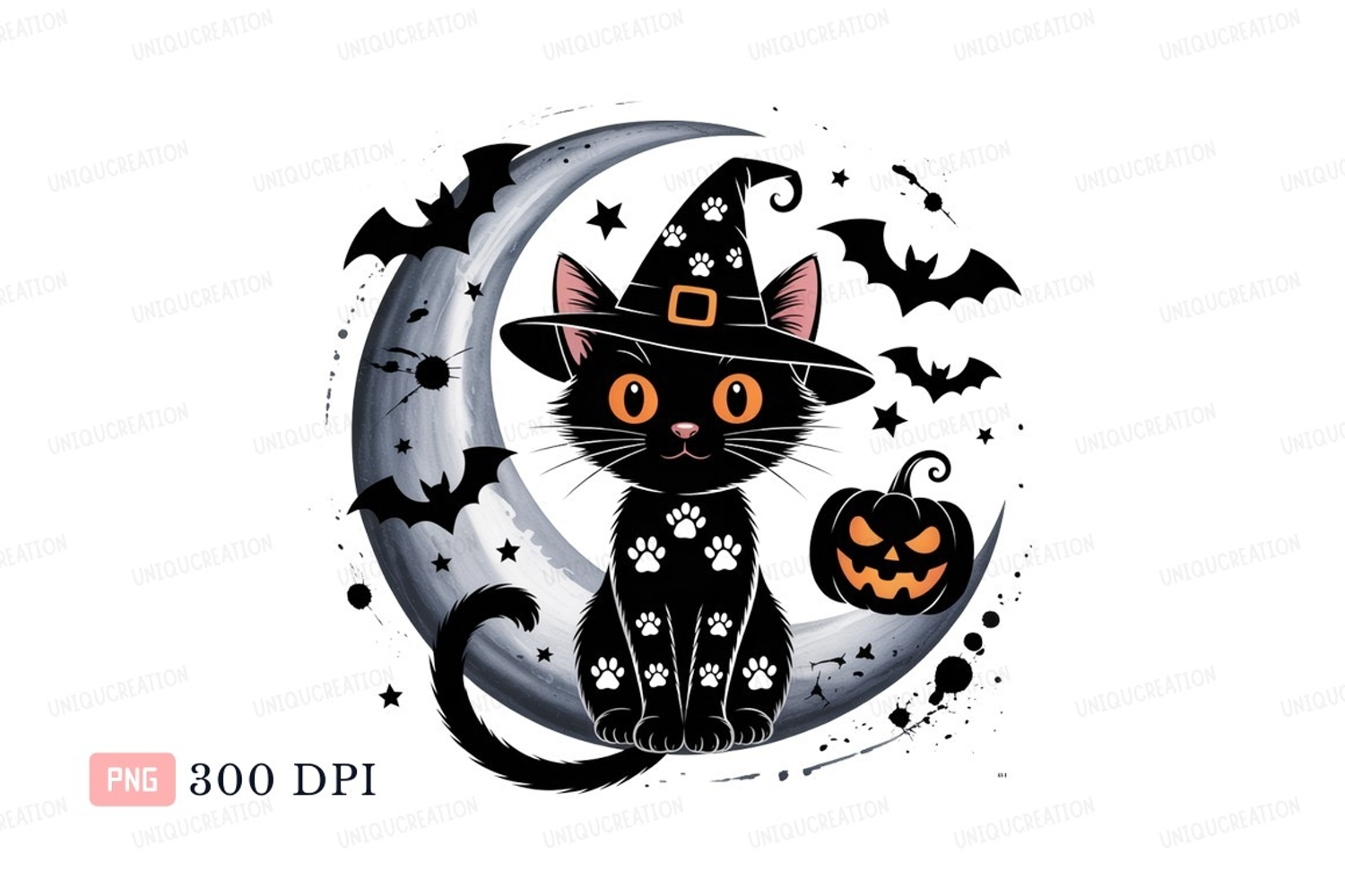 Black cat witch hat pumpkin moon image example image 1