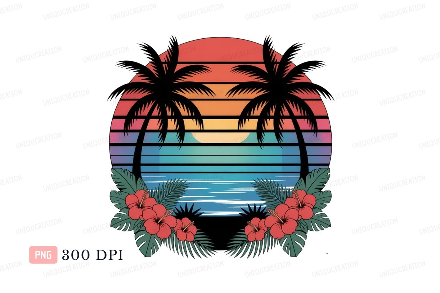 Similar Design Products to Tropical palms ocean sunset hibiscus flowers image