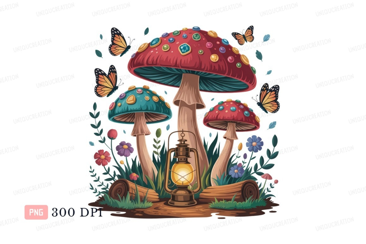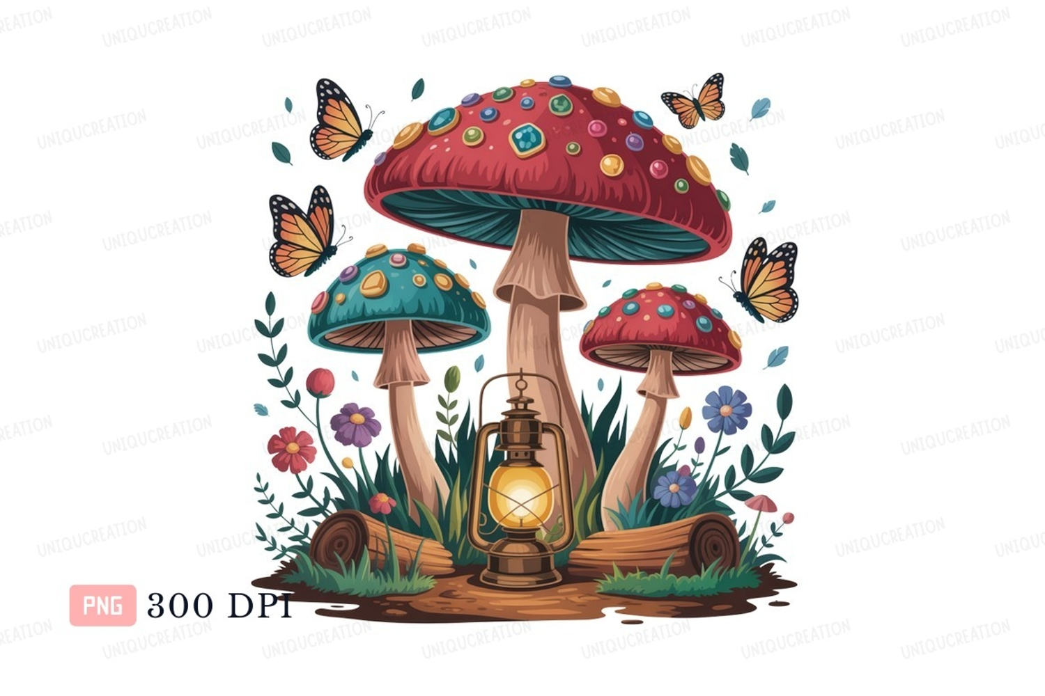 Whimsical mushrooms butterflies lantern flowers image example image 1