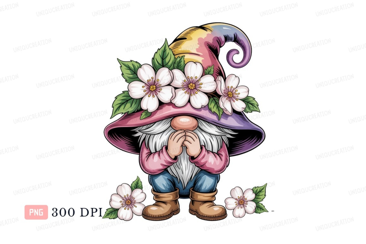 Similar Design Products to Gnome wearing flowers and hat pink blue