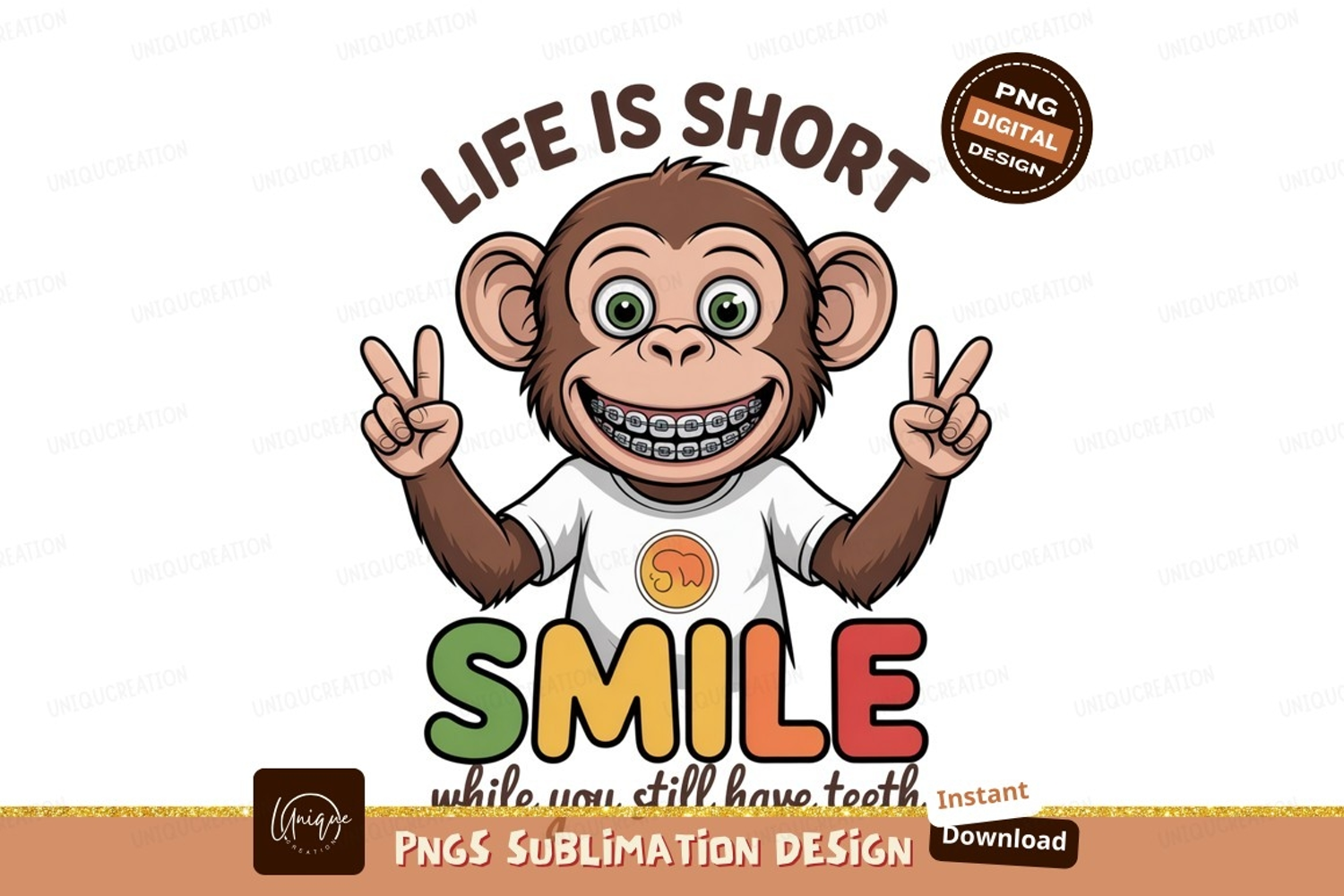 Similar Design Products to Cheerful monkey with braces and peace signs animal