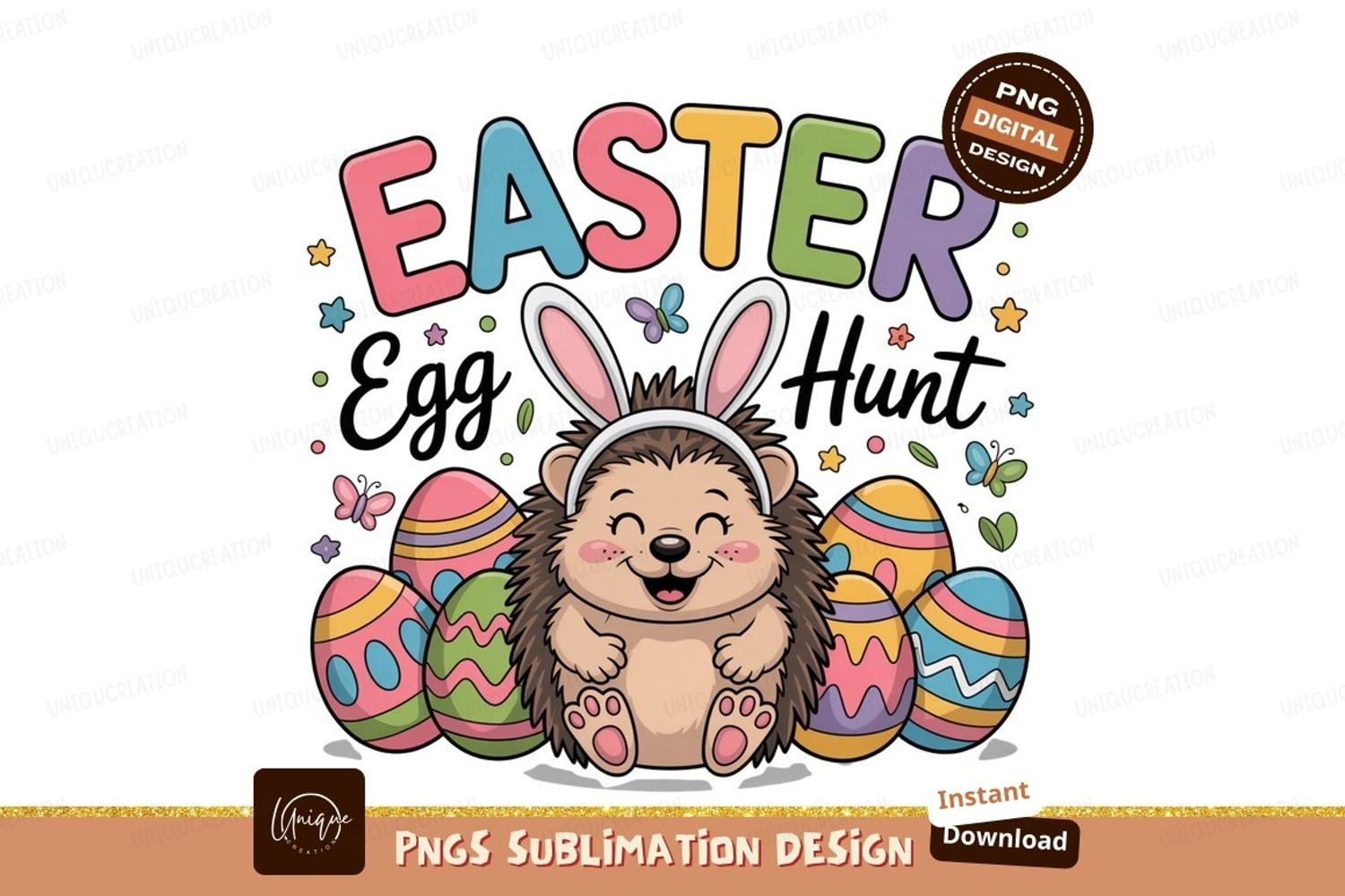 Cute hedgehog with bunny ears and easter eggs hunt example image 1