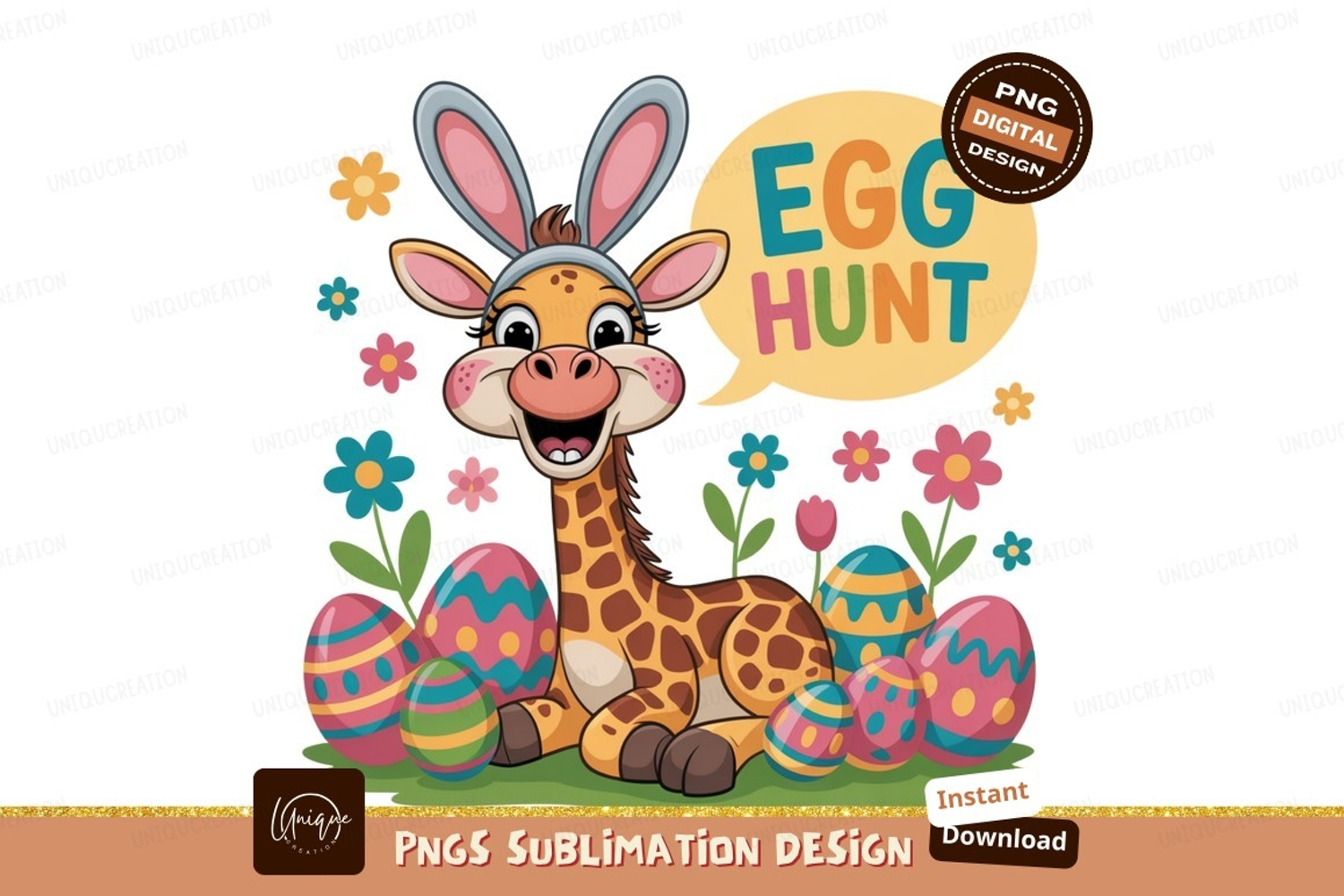 Giraffe wearing bunny ears with easter eggs image example image 1