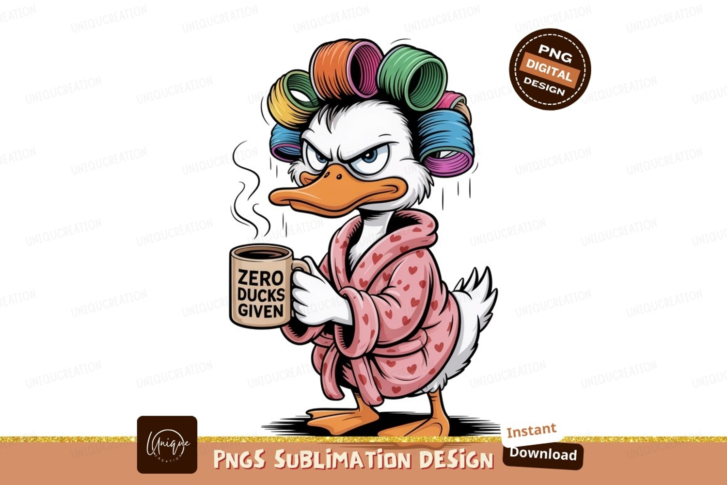 Grumpy duck with curlers and coffee robe example image 1