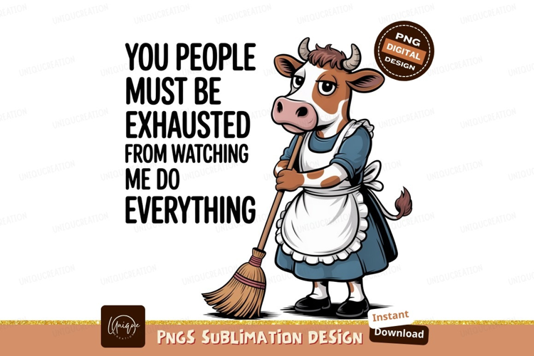 Similar Design Products to Cartoon cow cleaning with broom apron