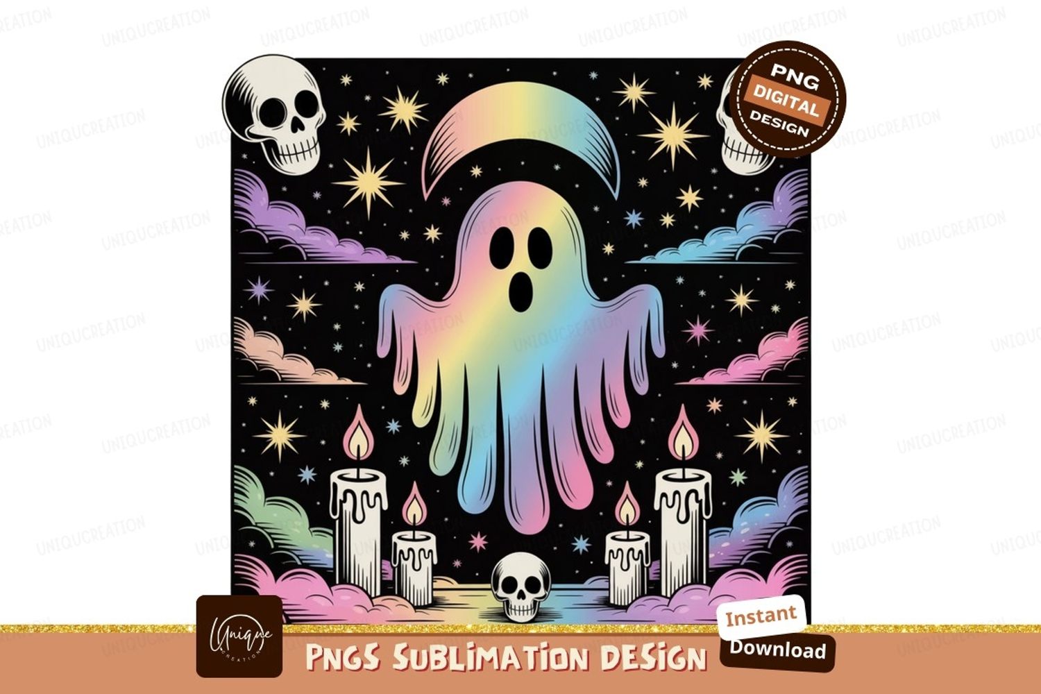 Similar Design Products to Rainbow ghost with skulls and candles moon