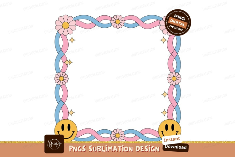 Smiley flowers ribbons stars frame pink