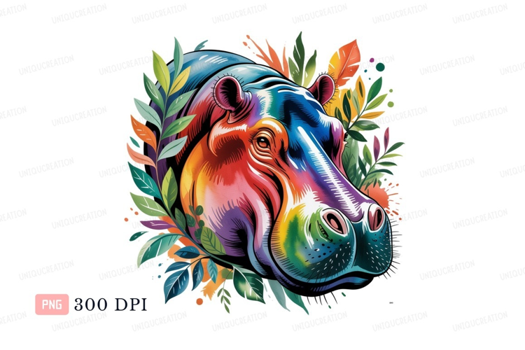 Colorful hippopotamus surrounded by foliage leaves example image 1