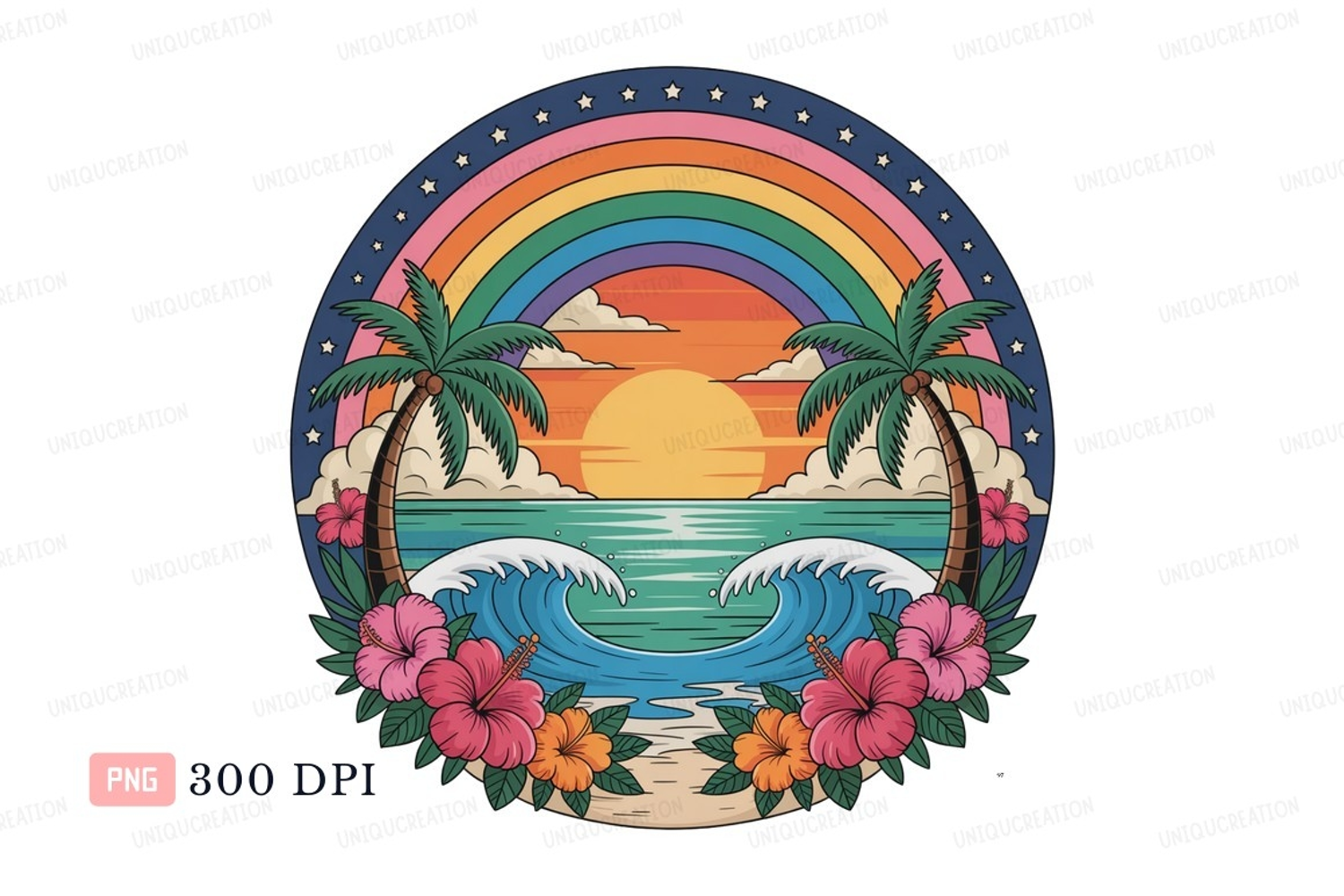 Similar Design Products to Tropical beach sunset rainbow scene ocean waves