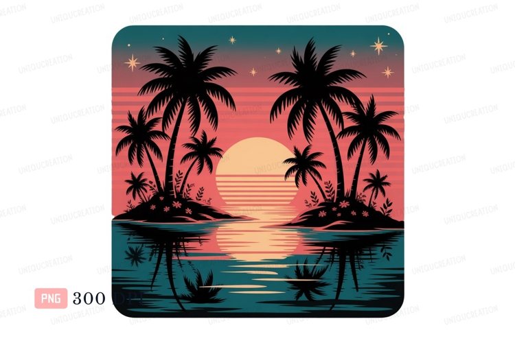 Ocean Water Silhouette Sunset Tropical Palms Sky Reflection Stars Islands