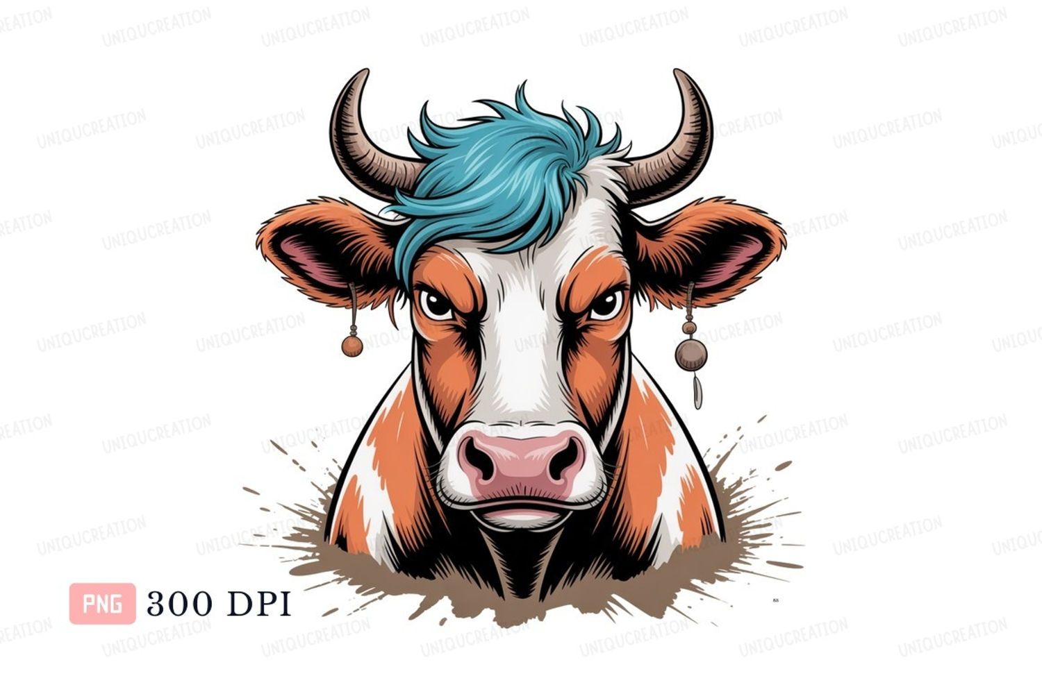 Fierce cow with blue hair and earrings animal mammalFierce c example image 1