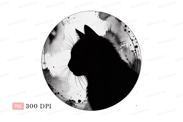 Ink Watercolor Animal Black Silhouette Splash Cat Circle Moon Profile
