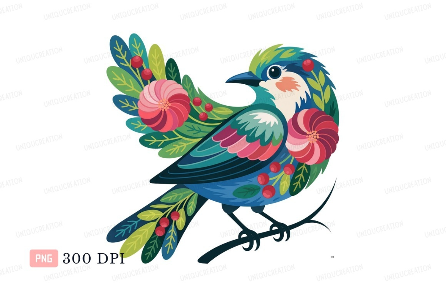Illustration Art Nature Colorful Flowers Clipart Bird Berries Png