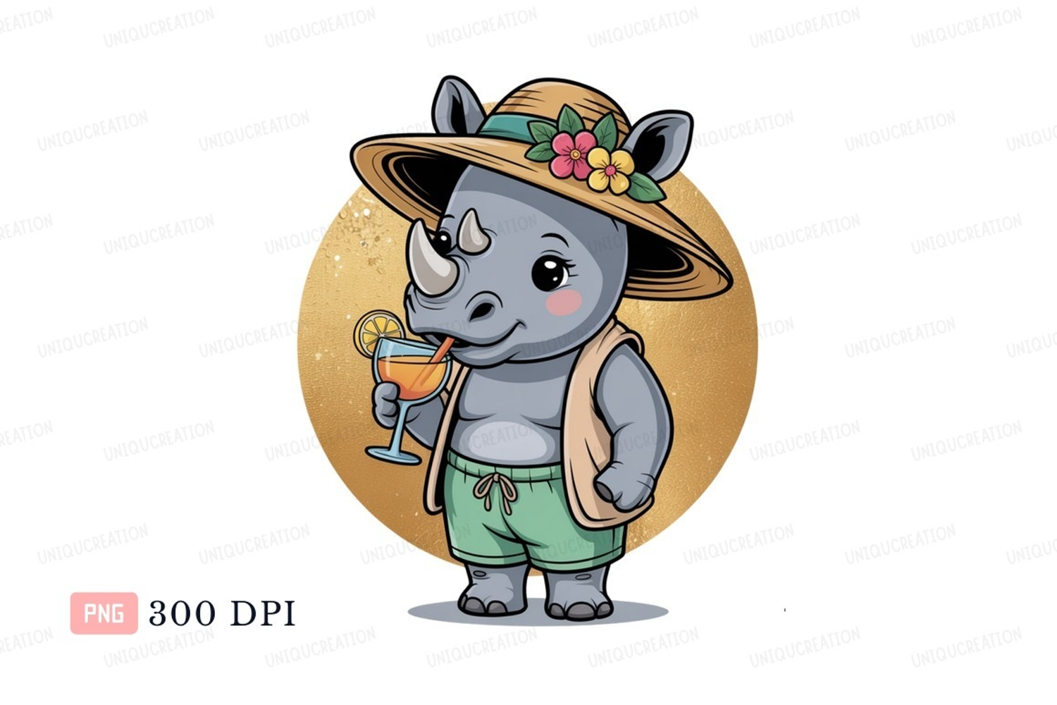 Cartoon Animal Summer Cute Drink Tropical Hat Vacation Juice Rhino