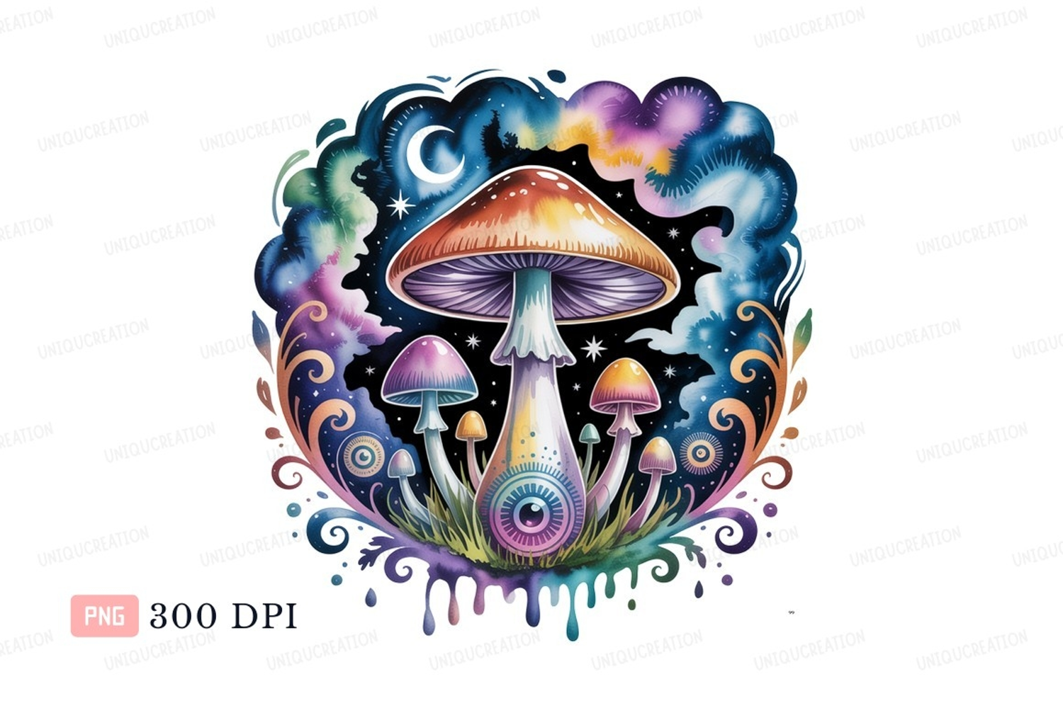 Psychedelic mushrooms cosmic night galaxy