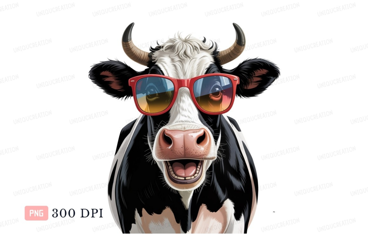 Cartoon Funny Animal Black Clipart Png White Red Sunglasses Cow