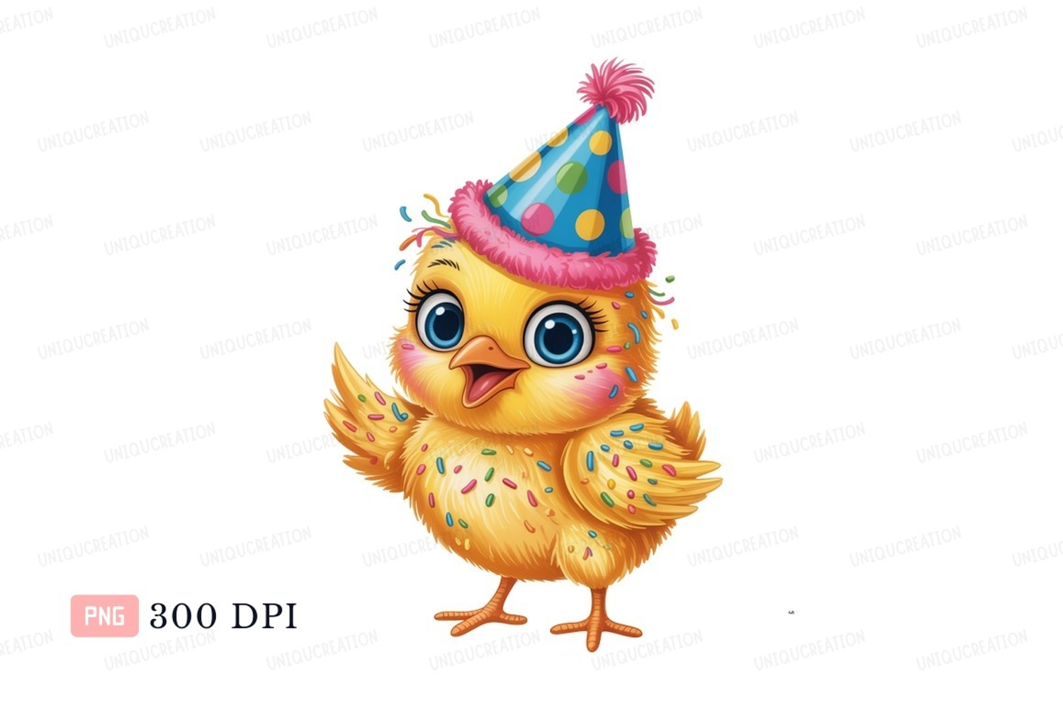 Cartoon Party Cute Pink Confetti Blue Yellow Hat Chick Sprinkles