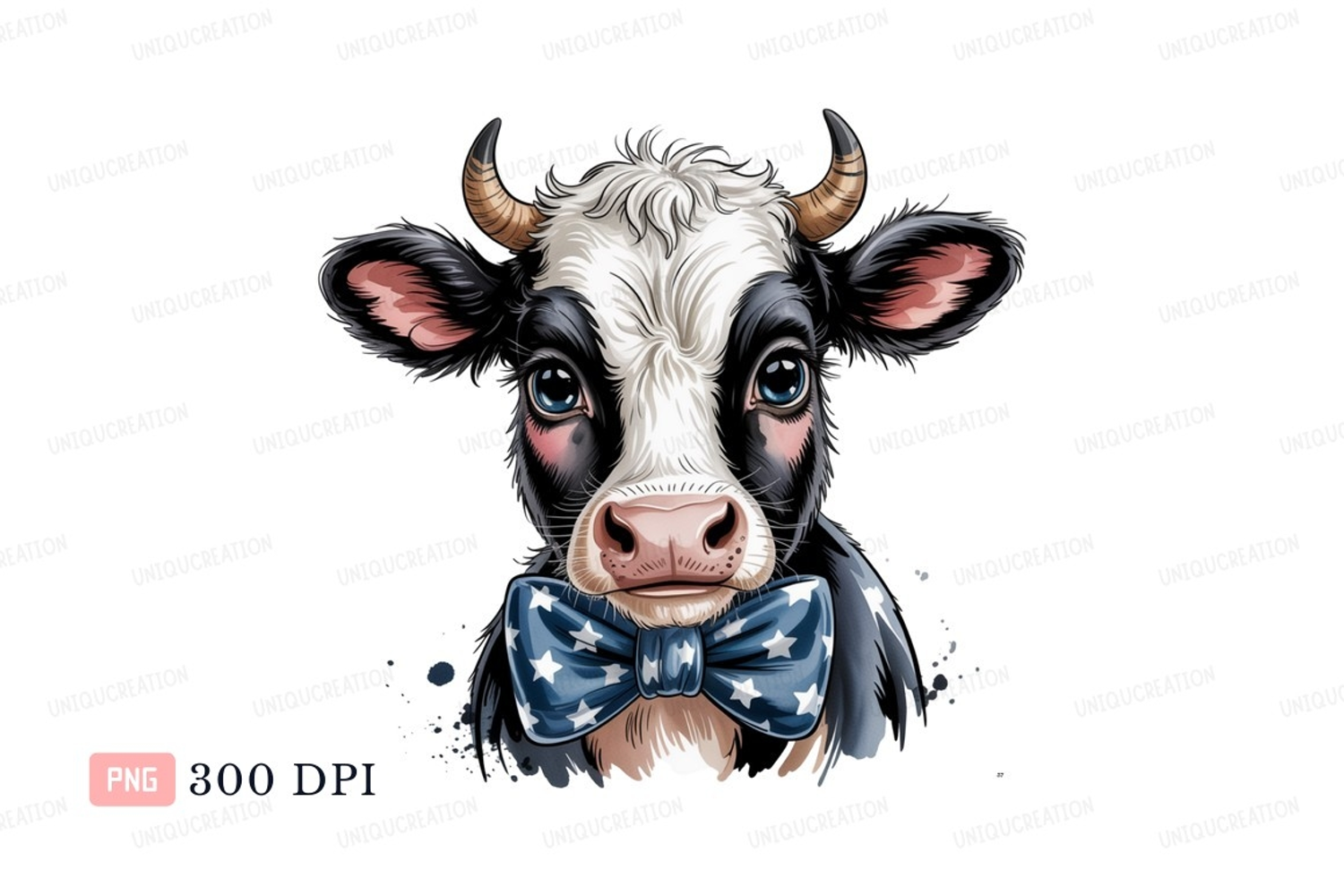Adorable cow wearing patriotic bowtie animal blue example image 1