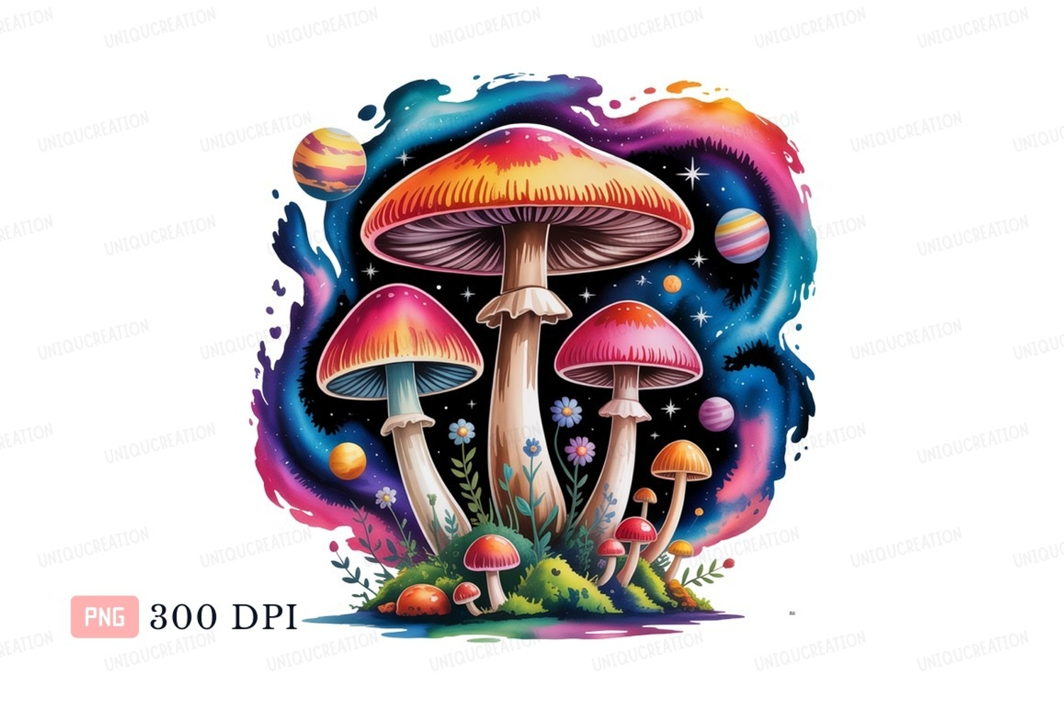 Psychedelic mushrooms cosmic nebula planets image example image 1