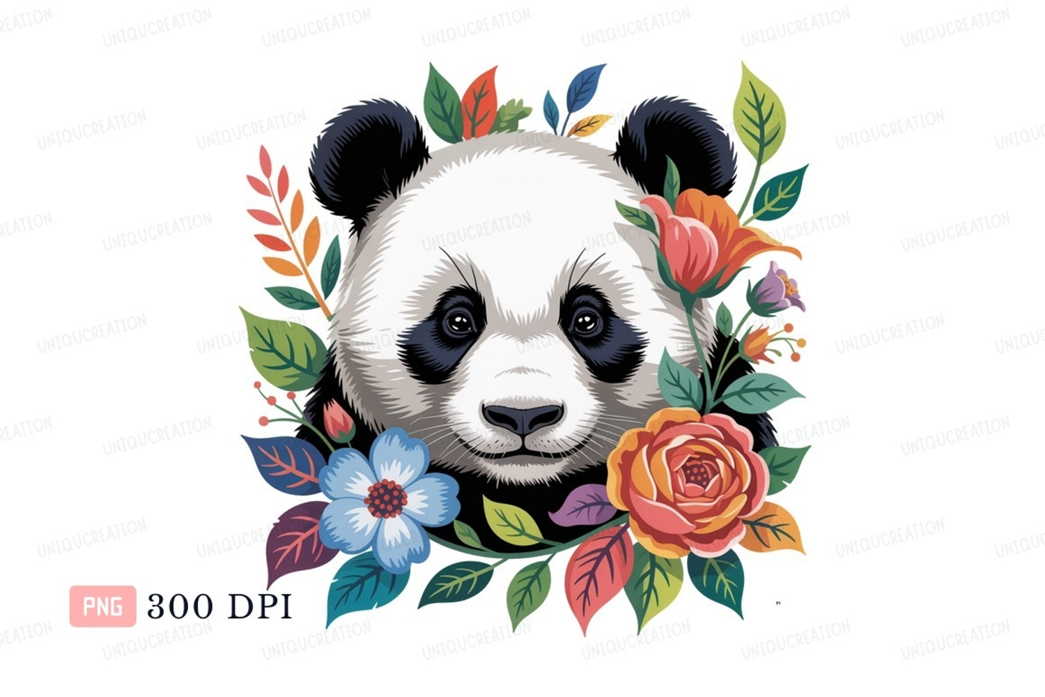Similar Design Products to Panda surrounded by colorful flowers bear animal