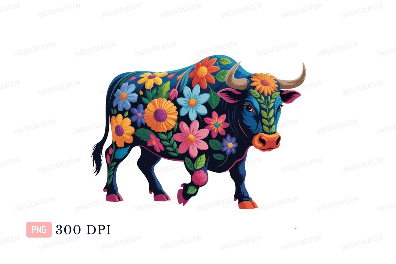 Floral bull walking flowers blue example image 1