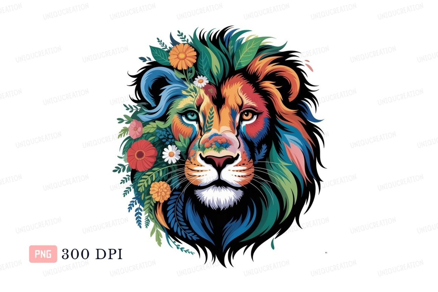 Similar Design Products to Colorful lion adorned with flowers flora fauna