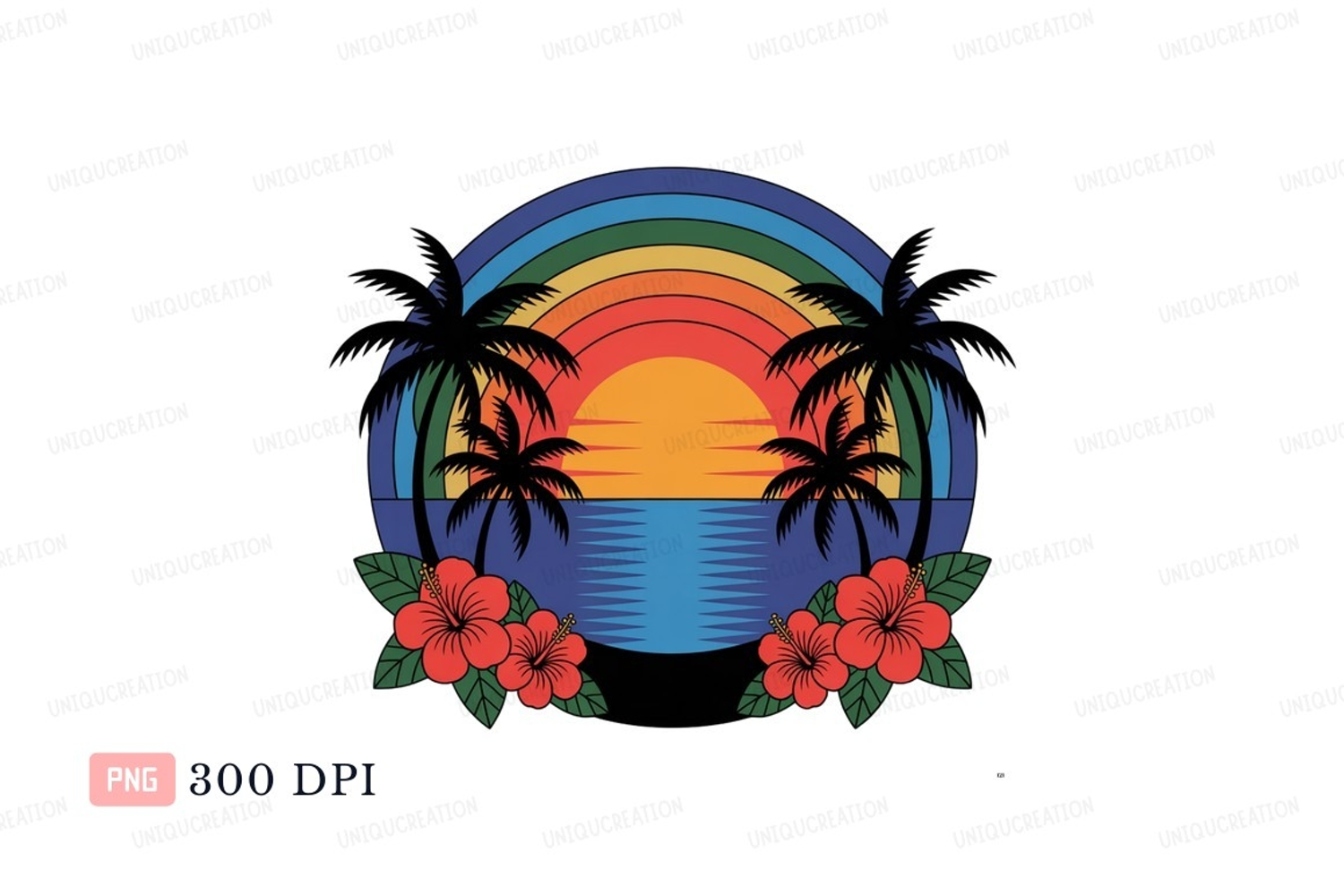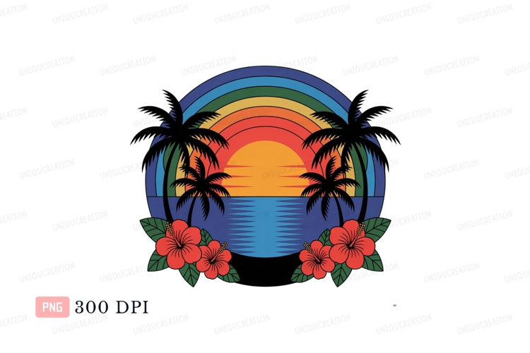 Similar Design Products to Tropical sunset rainbow ocean palms hibiscus image