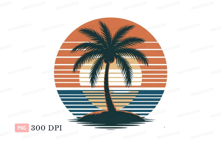 Vintage Retro Ocean Tree Water Sunset Tropical Vacation Island Palm
