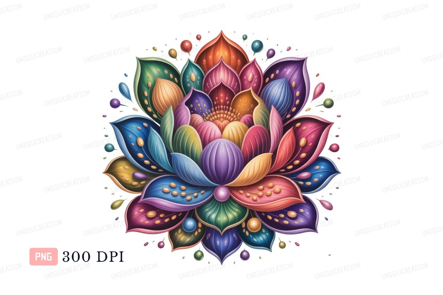Decorative Colorful Flower Ornate Abstract Mandala Vibrant Lotus Petals Spiritual