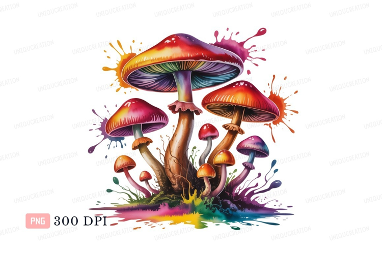 Psychedelic mushroom cluster vibrant colors mushrooms example image 1