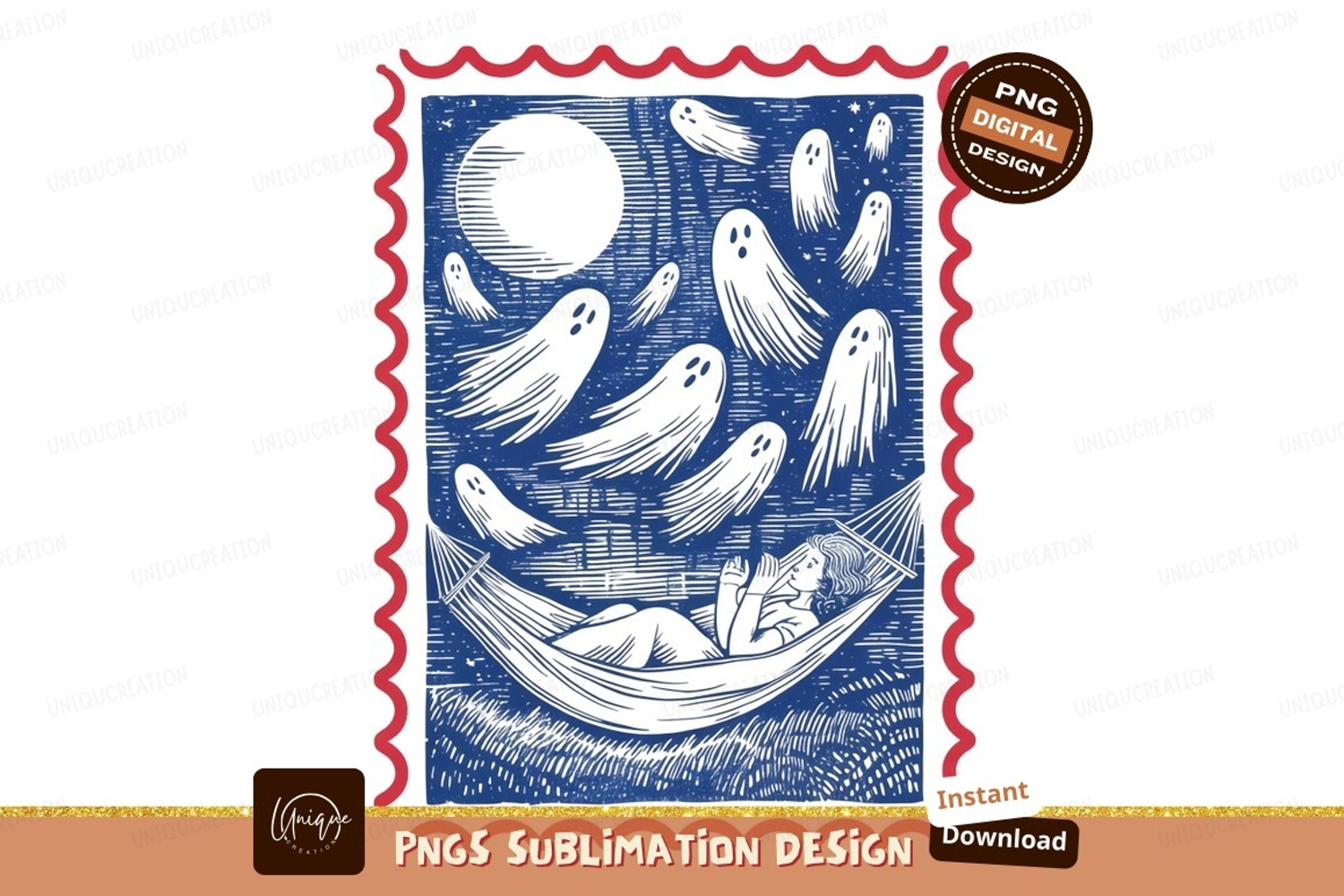 Similar Design Products to Person reading in hammock surrounded by ghosts night