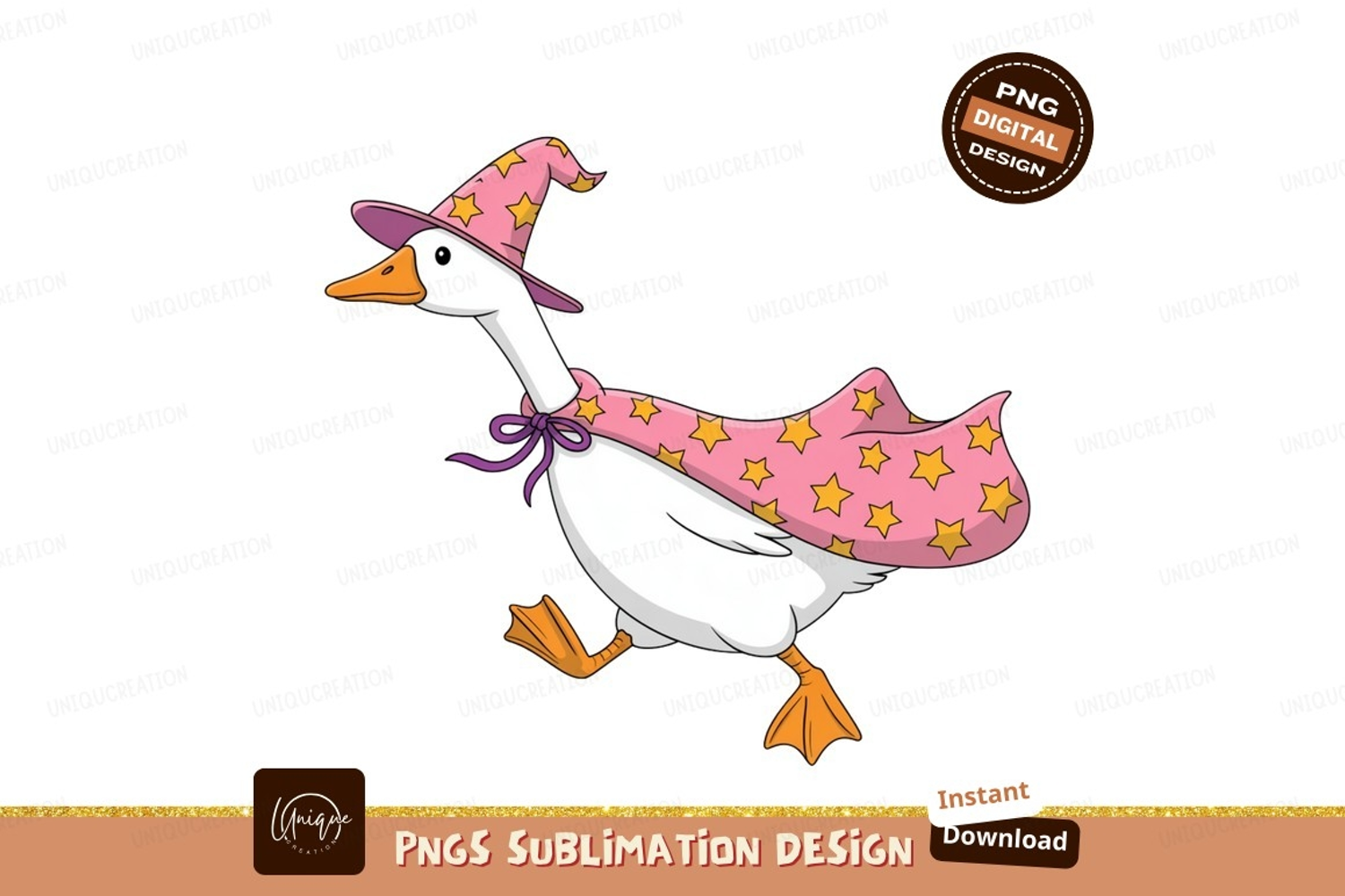 Similar Design Products to White goose wearing pink wizard hat and cape yellow