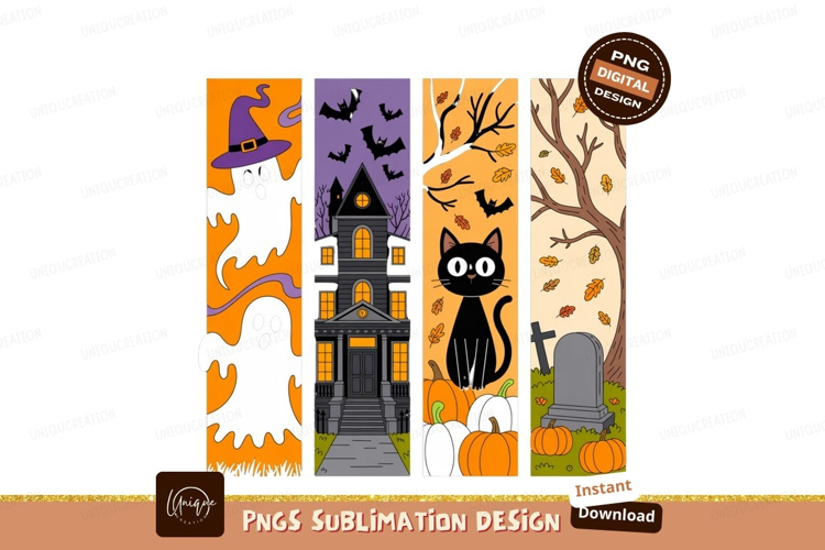 Halloween ghosts haunted house black cat pumpkins tombstone example image 1