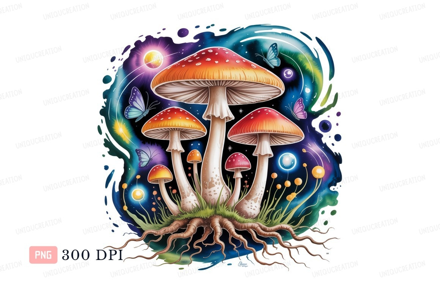 Fantasy Whimsical Nature Cosmic Glow Mushrooms Butterflies Psychedelic Roots Fungi