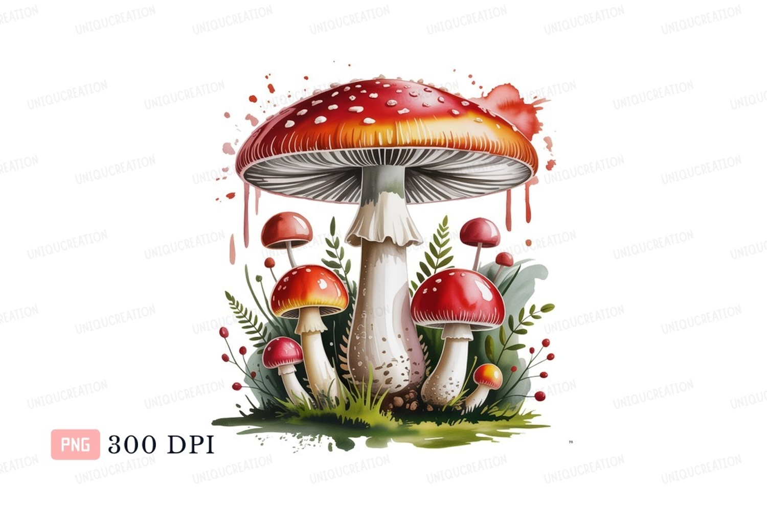 Similar Design Products to Red white spotted mushrooms growing nature