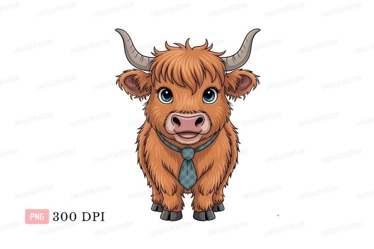 Similar Design Products to Fluffy brown cow wearing tie highland horns