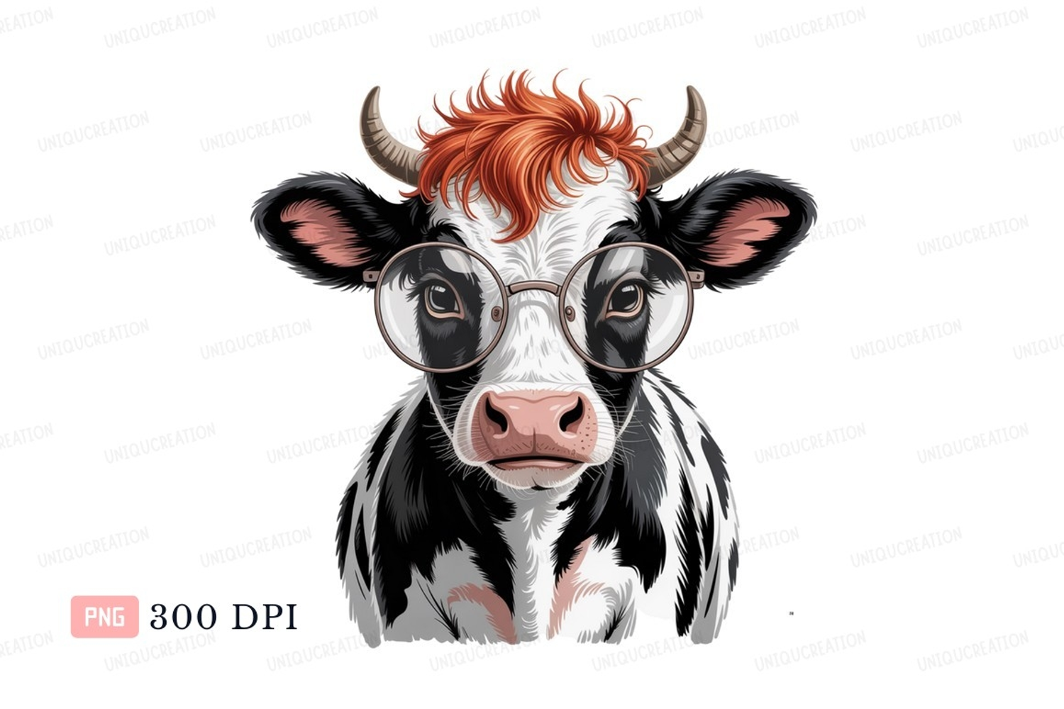 Animal Black Pink Clipart Hair Png White Glasses Red Cow