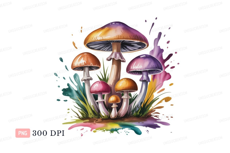 Similar Design Products to Colorful mushroom cluster with watercolor splashes