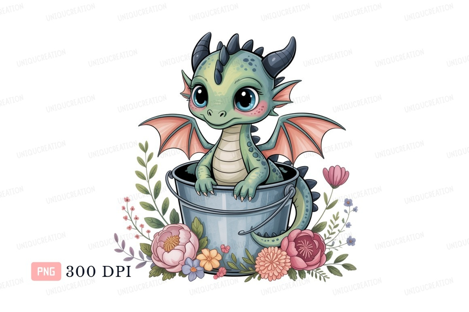 Fantasy Cute Pink Green Flowers Clipart Blue Pastel Dragon Bucket