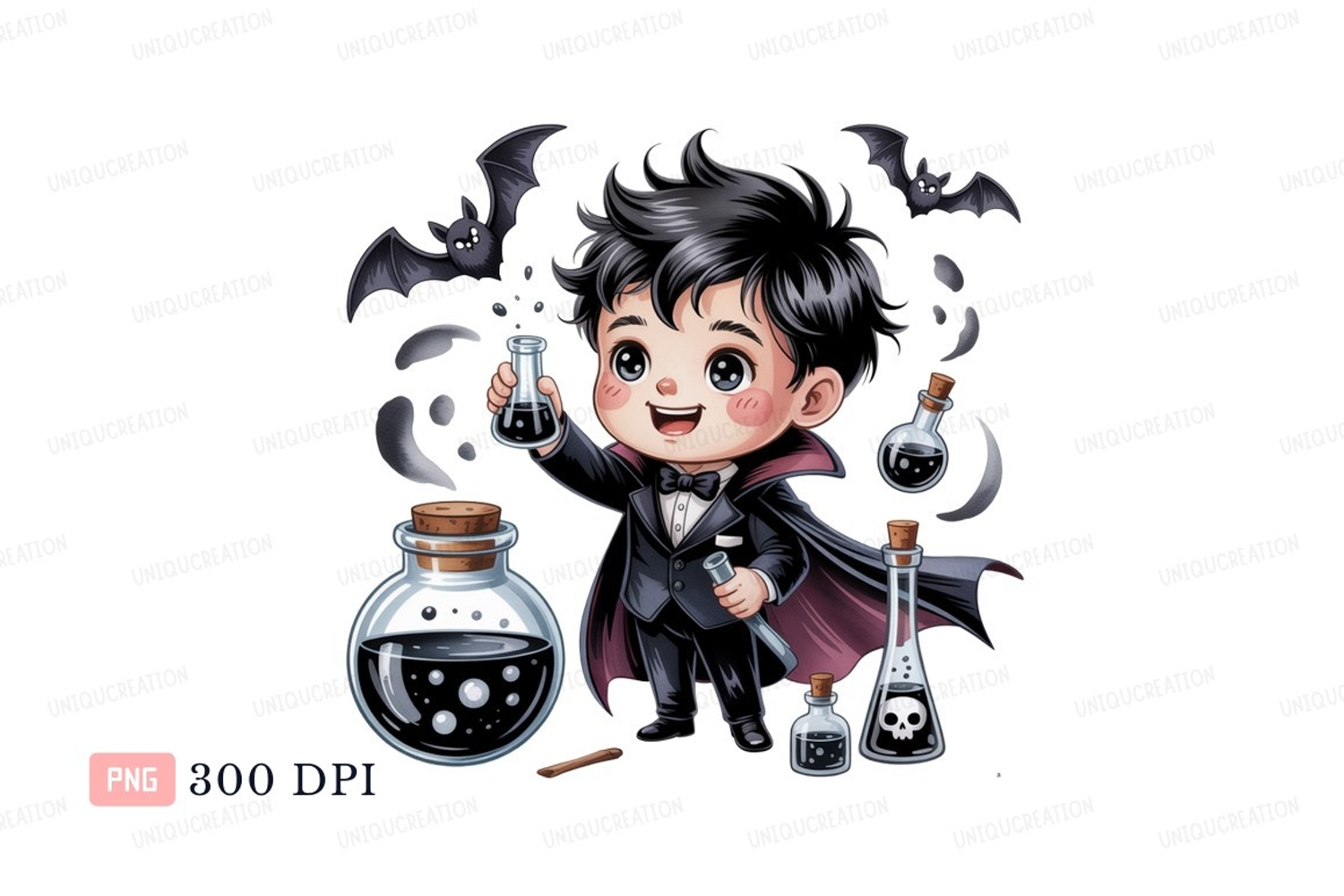 Cartoon Halloween Black Cute Boy Vampire Purple Bat Spooky Potion