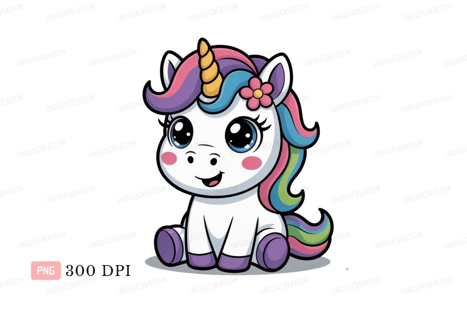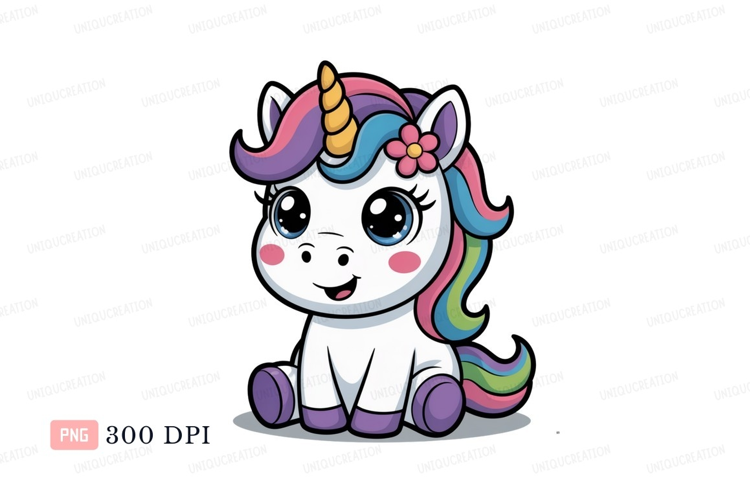 Cute cartoon unicorn with colorful mane fantasy magical example image 1