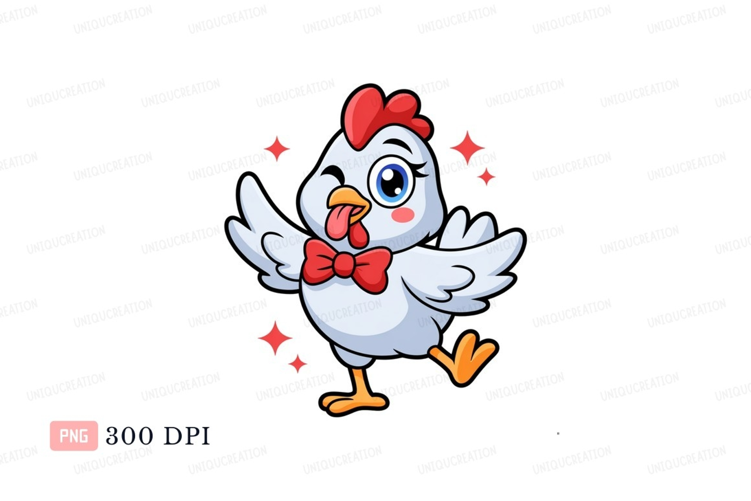 Cartoon Animal Cute Clipart Bird Bow White Red Chicken Tie