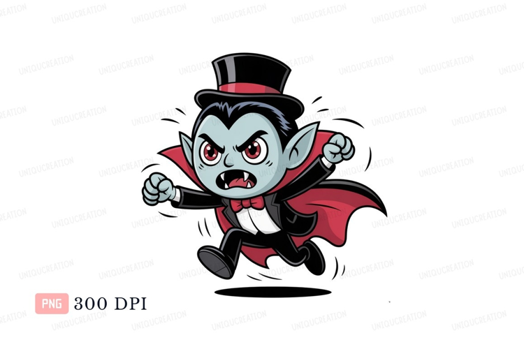 Cartoon Black Vampire Blue Hat White Suit Red Running Cape