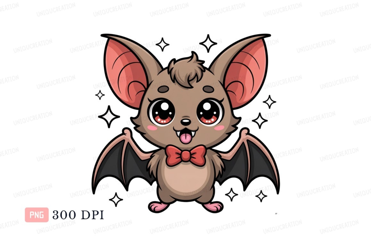 Cute bat with big eyes and red bow tie cartoon animal example image 1