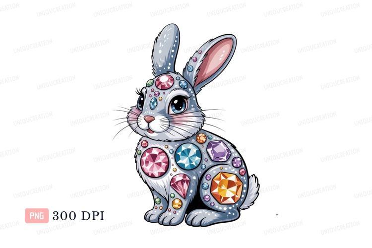 Illustration Animal Whimsical Cute Ornate Clipart Png Rabbit Jewels Gems