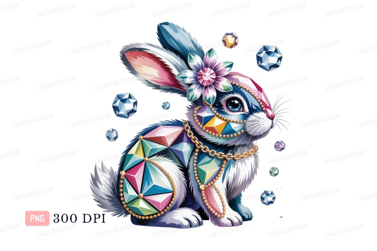 Jeweled rabbit adorned with flower and gems bunny crystals example image 1
