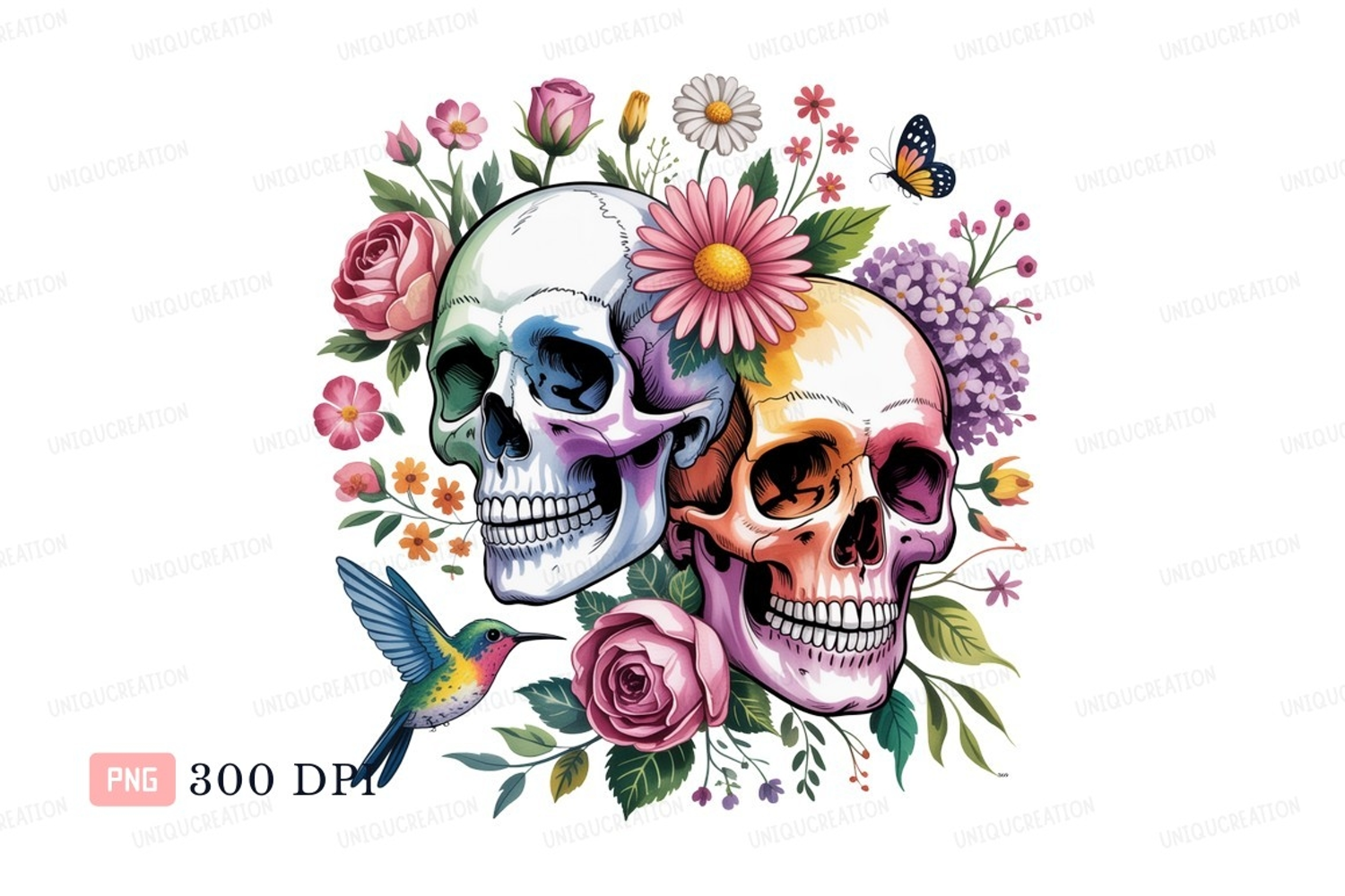 Skulls flowers butterfly hummingbird Clipart example image 1