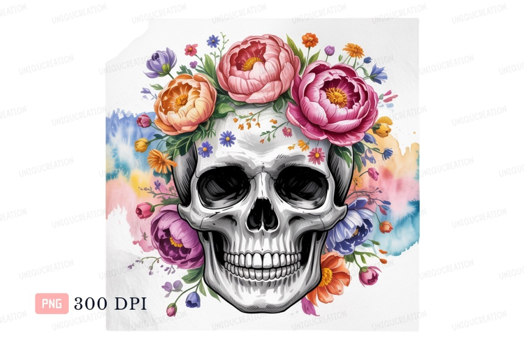 Similar Design Products to Skull adorned with colorful flowers floral bouquet