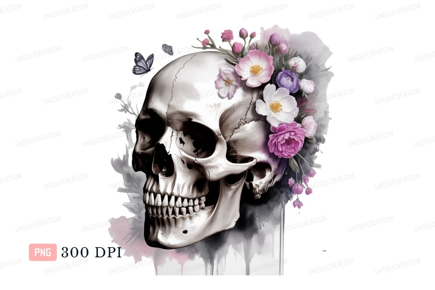 Similar Design Products to Skull adorned with delicate flowers and butterflies
